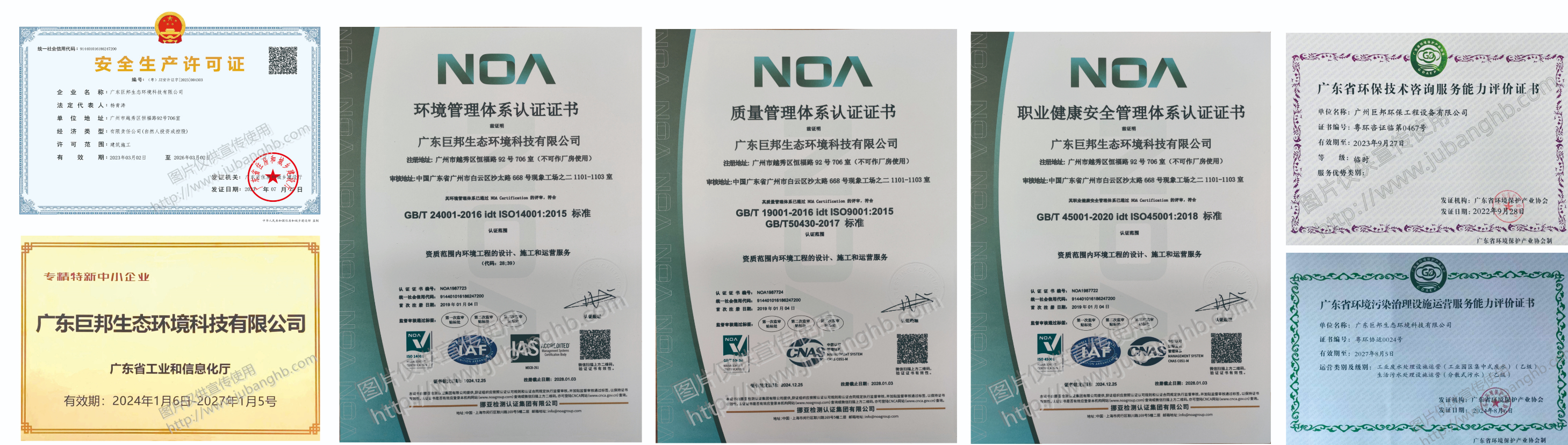 巨邦公司屬國(guó)家高新技術(shù)企業(yè),廣東省專精特新中小企業(yè),廣州市科技創(chuàng)新小巨人企業(yè);擁有國(guó)家住建部頒發(fā)的環(huán)保工程設(shè)計(jì)乙級(jí)資質(zhì)(廢水、廢氣、噪聲);擁有廣東省住建廳頒發(fā)的建筑企業(yè)環(huán)保專項(xiàng)承包貳級(jí)資質(zhì);擁有廣東省環(huán)境污染治理設(shè)施運(yùn)營(yíng)服務(wù)能力評(píng)價(jià)(工業(yè)廢水、生活污水)乙級(jí)資質(zhì);并已取得ISO9001質(zhì)量體系認(rèn)證、ISO14001環(huán)境體系認(rèn)證和ISO45001職業(yè)健康安全管理體系認(rèn)證。