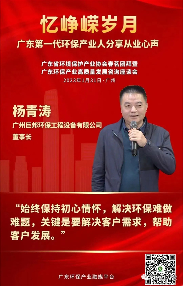 巨邦公司作為廣東省老字號(hào)環(huán)保企業(yè),楊青濤董事長(zhǎng)作為第一代的環(huán)保產(chǎn)業(yè)人,于此團(tuán)拜會(huì)上分享了28年以來的從業(yè)心聲。